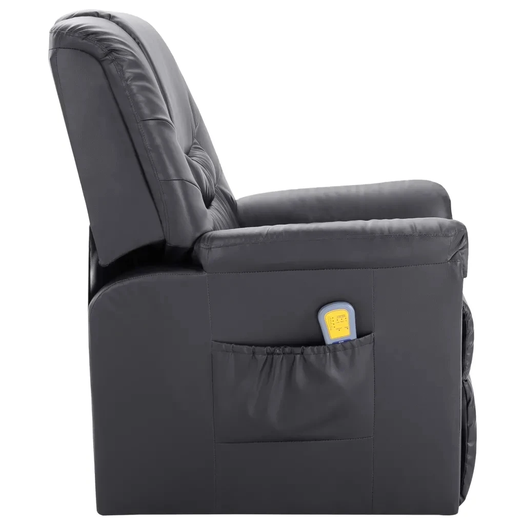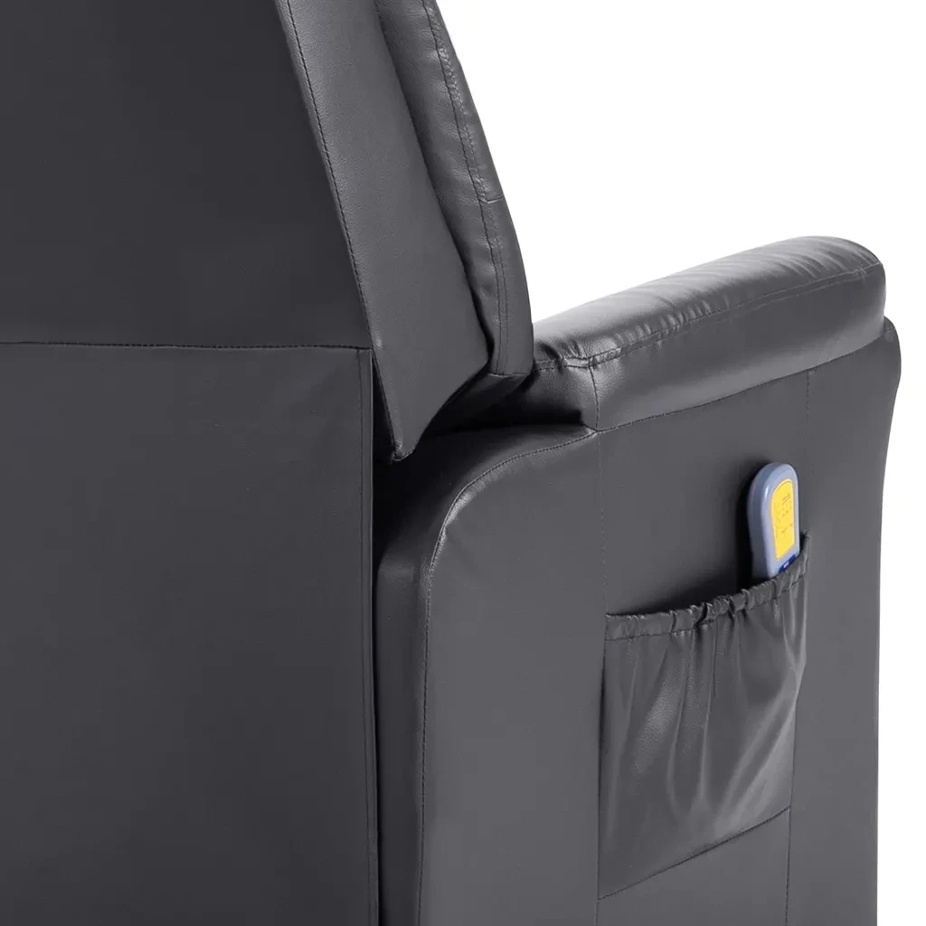 Стул изготовлен из искусственной кожи и имеет 10 массажных точек для головы, шеи, спины и ног. Массажные точки посылают расслабляющие вибрации в 3 различных интенсивности. С помощью пульта дистанционного управления вы можете выбрать из 10 различных программ массажа. С одним нажатием кнопки сиденье также может нагреваться для еще более расслабляющего ощущения. Спинка может быть отрегулирована назад, в то время как подставка для ног может быть отрегулирована вверх, это положение позволяет лежать. Стул также предлагает таймер, чтобы установить продолжительность массажа.