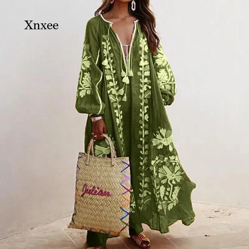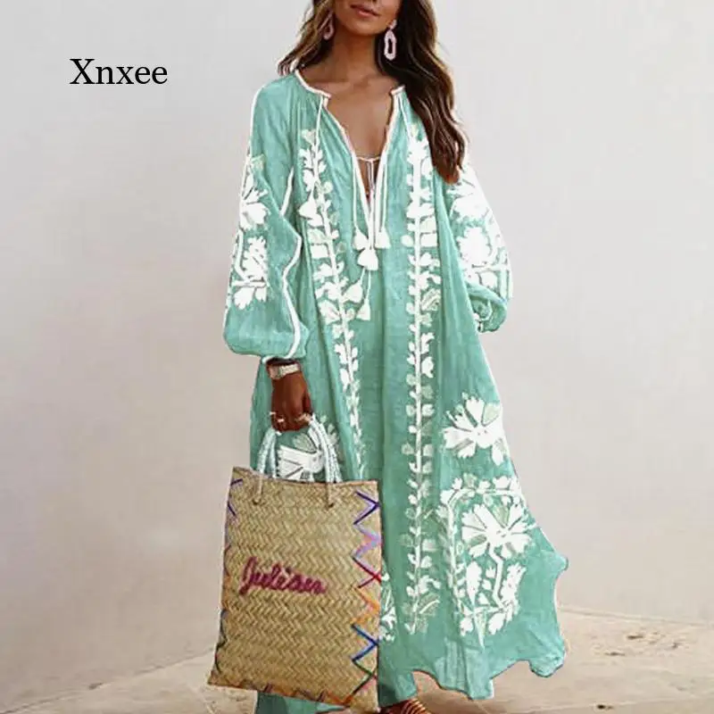 Отзывы о Платье-макси с рукавами-фонариками V-образным вырезом и цветочным принтом -