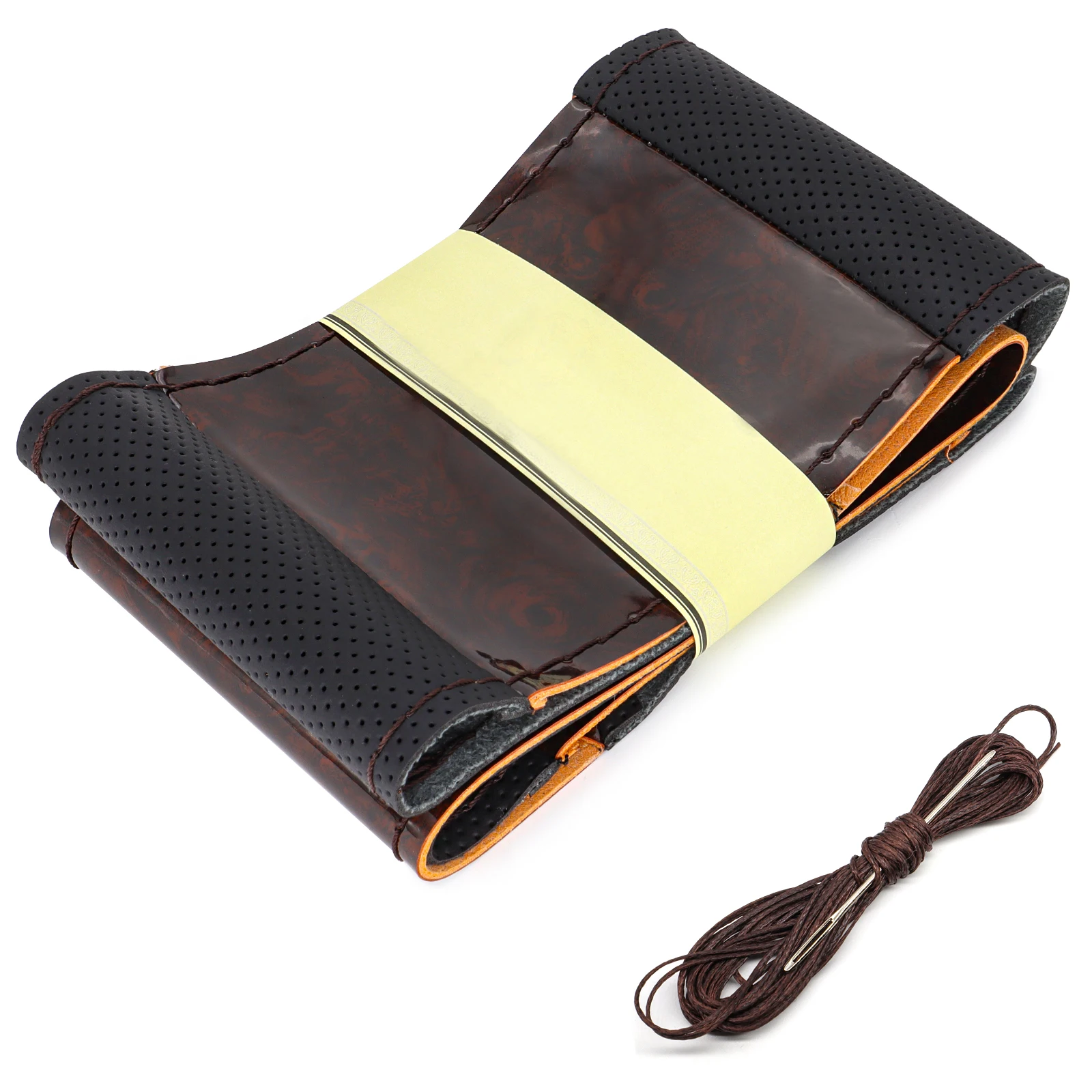-- Легко устанавливается. Не нужно снимать рулевое колесо или удалять оригинальную кожу; Просто оберните его поверх кожи OEM, Затем возьмите иглу и пришите нить, следуя уже существующим стежкам.