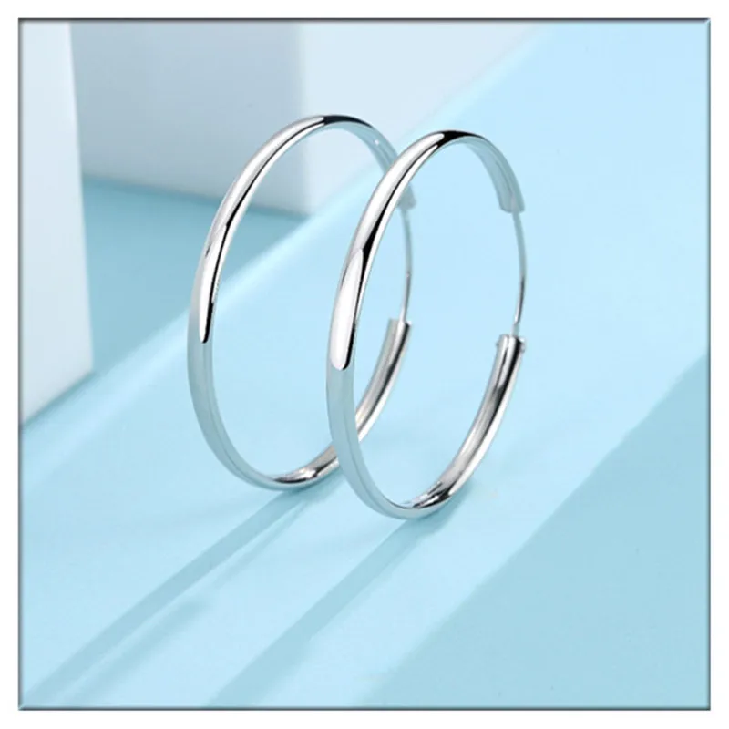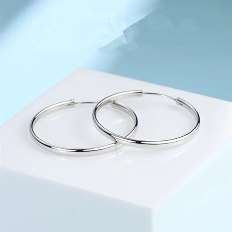 Отзывы о 925 пробы серебряные серьги круглые большие для женщин Платиновое Покрытие Ушные