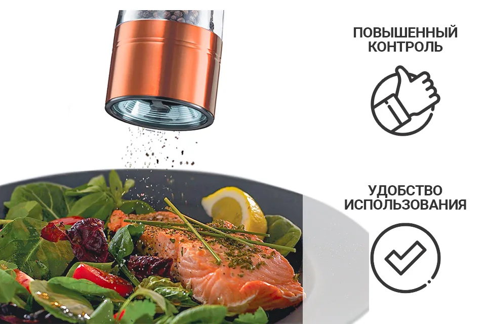 Устройства приводятся в действие простым нажатием кнопки на корпусе. Вам больше не нужно прикладывать усилия для получения ароматных приправ.