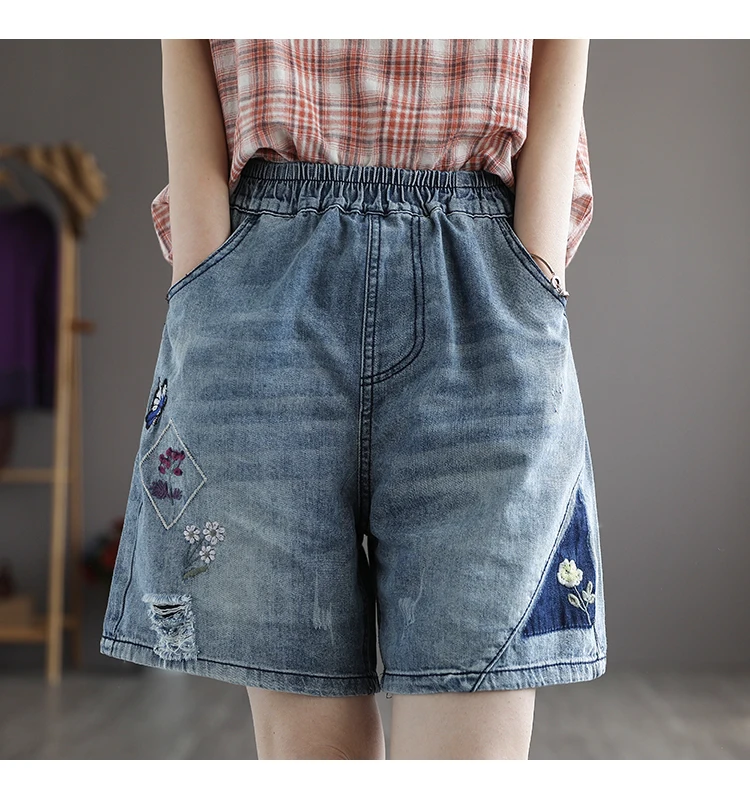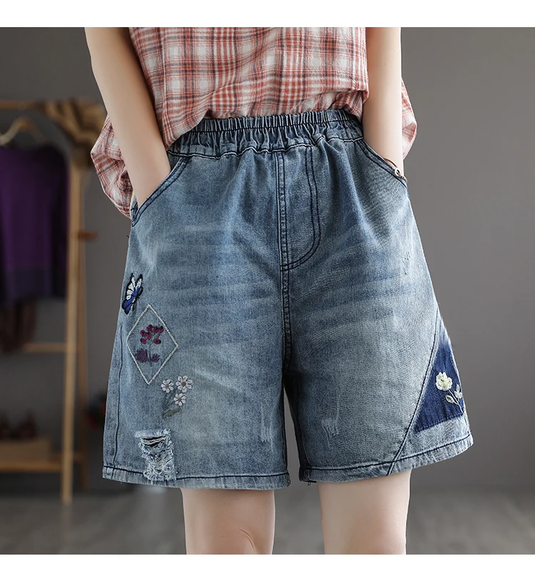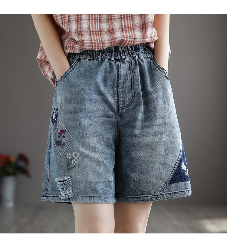 Отзывы о 21New женские джинсовые шорты Выбеленные цветочной вышивкой рваные Свободная
