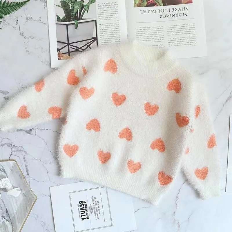 Отзывы о 2-12Yrs детские топы мягкая девушка рубашка с узором в виде сердца Свитер длинными