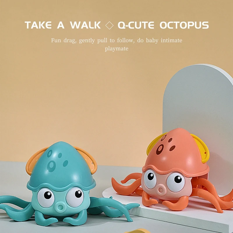 Детская игрушка для ванны Интерактивная игрушка-осьминог буксируемая на земле и