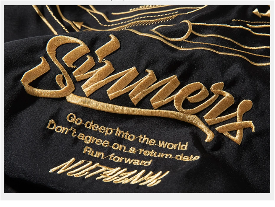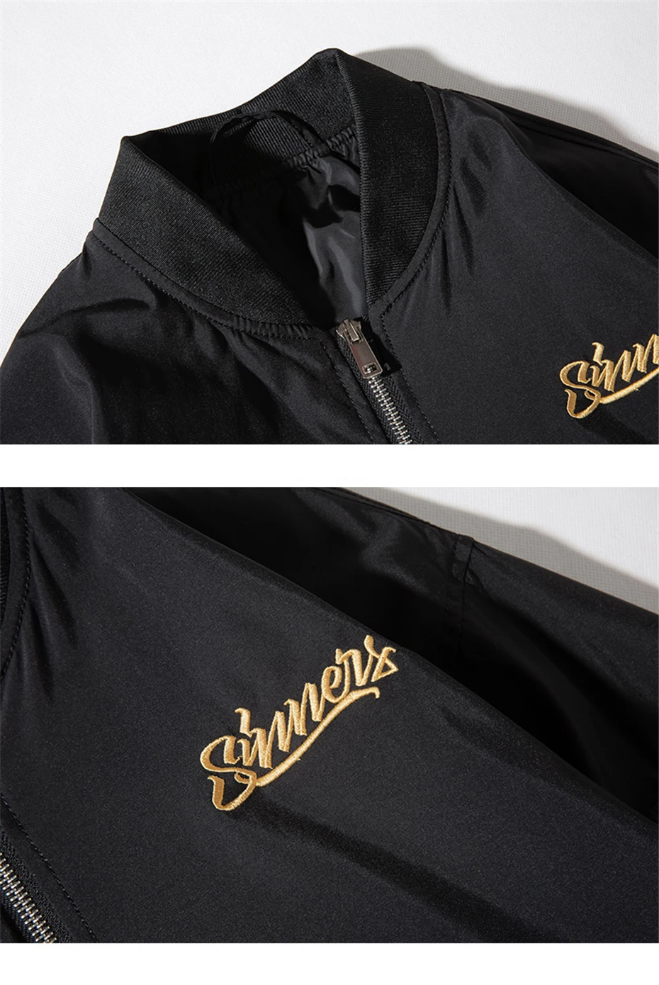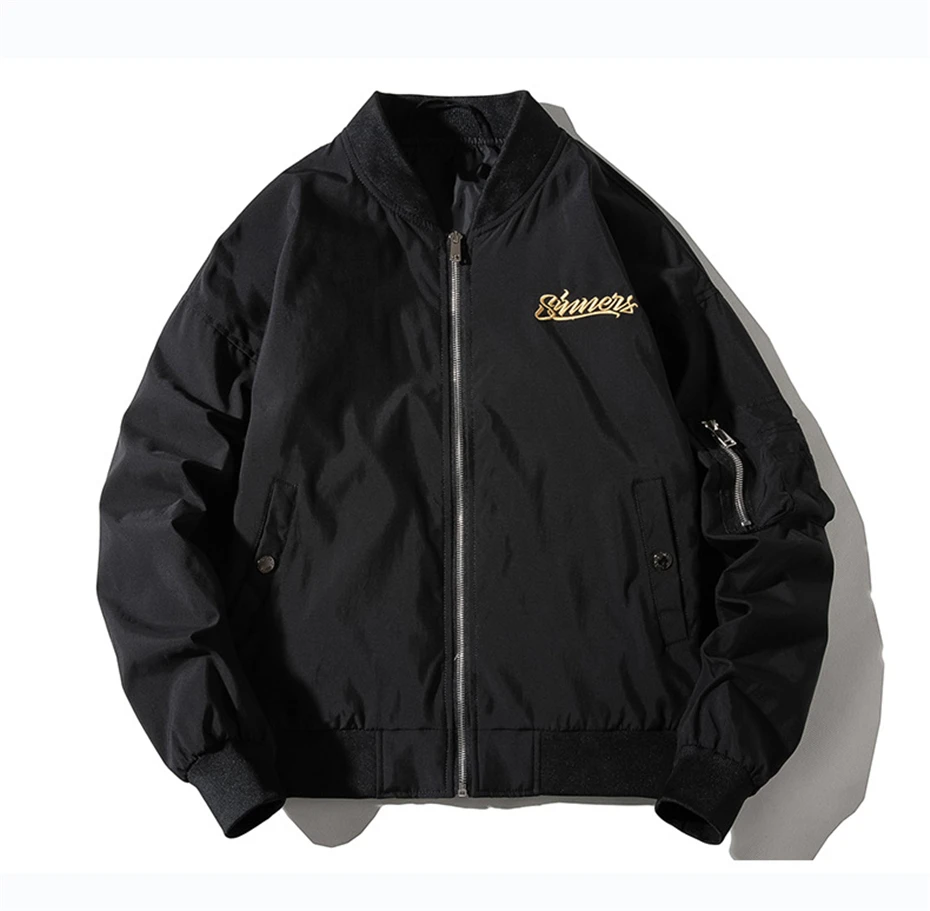 Отзывы о Куртка-бомбер мужская черная в стиле хип-хоп с золотыми буквами и вышивкой -