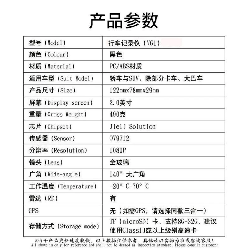 VG1 Car DVR Recorder with Holder 140° Wide Angle Video Recorder Data Recorder G-sensor Camera Flow Radars Detector