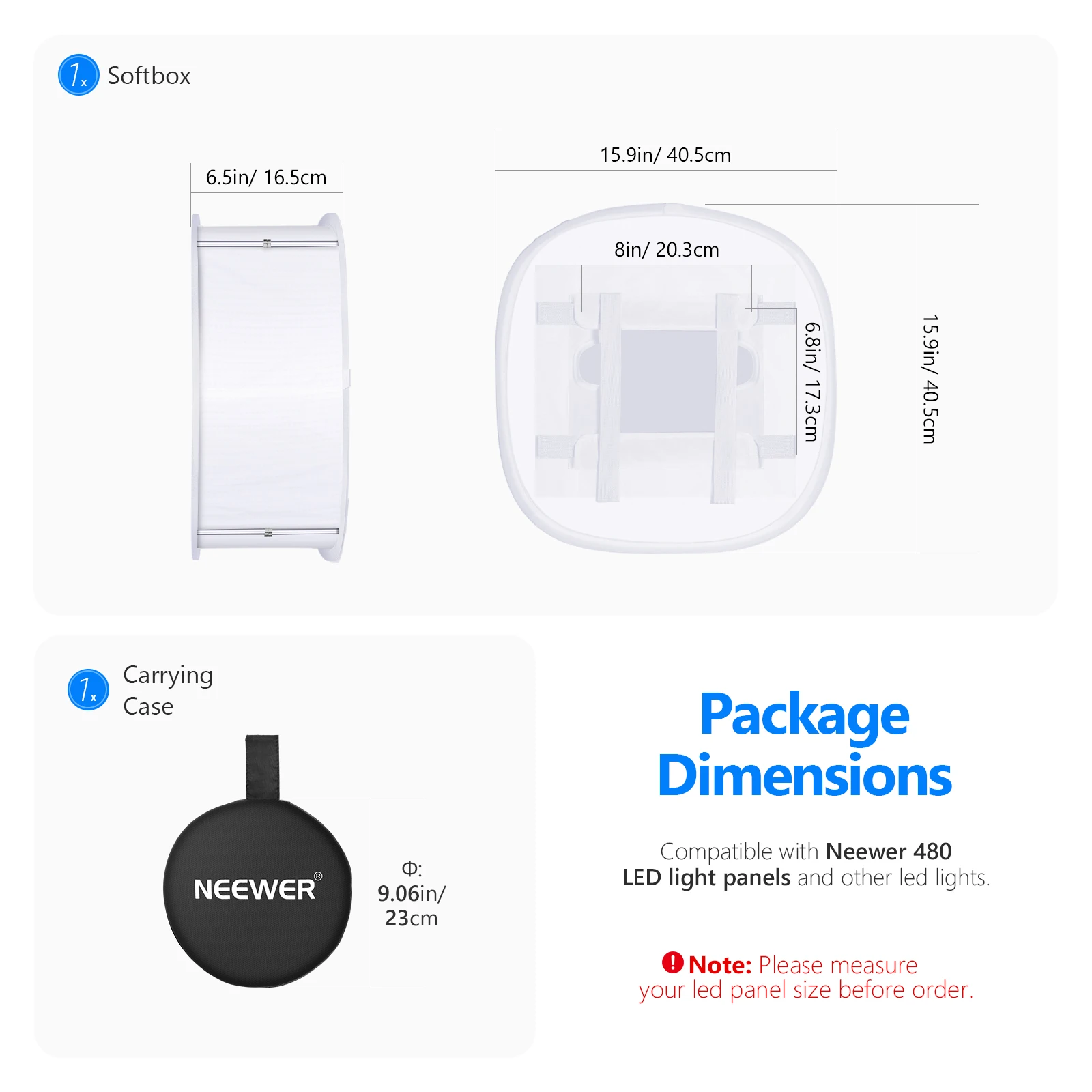 Совместимость с Neewer 480 Светодиодный светильник: Этот прочный софтбокс может быть присоединен к Neewer 480 светодиодный панельный светильник крепко для того, чтобы смягчить жесткие вспышка светильник и уменьшить тень на ваш объект в тех случаях, когда в использовании; Внутреннее отверстие Размеры: 8x6,8 дюйм (ов), всплывающие Размеры: 16x16x6,5 дюйм (ов) Примечание: светодиодный светильник-это не прилагаются