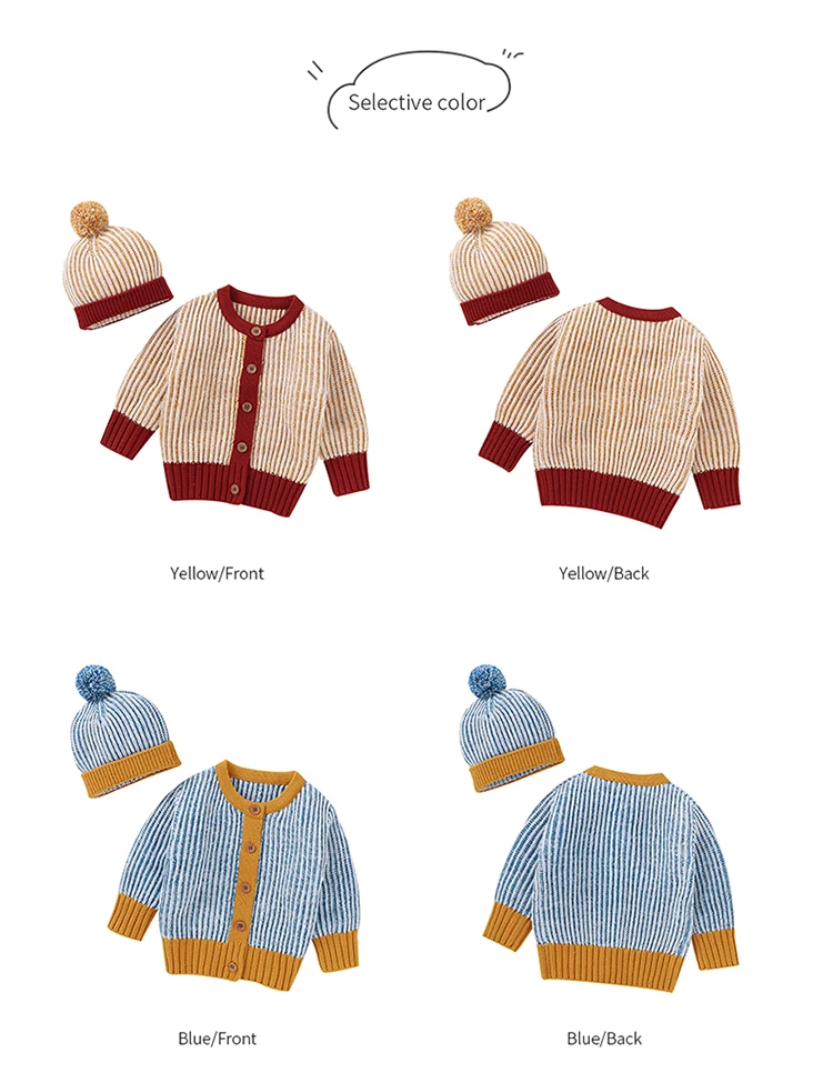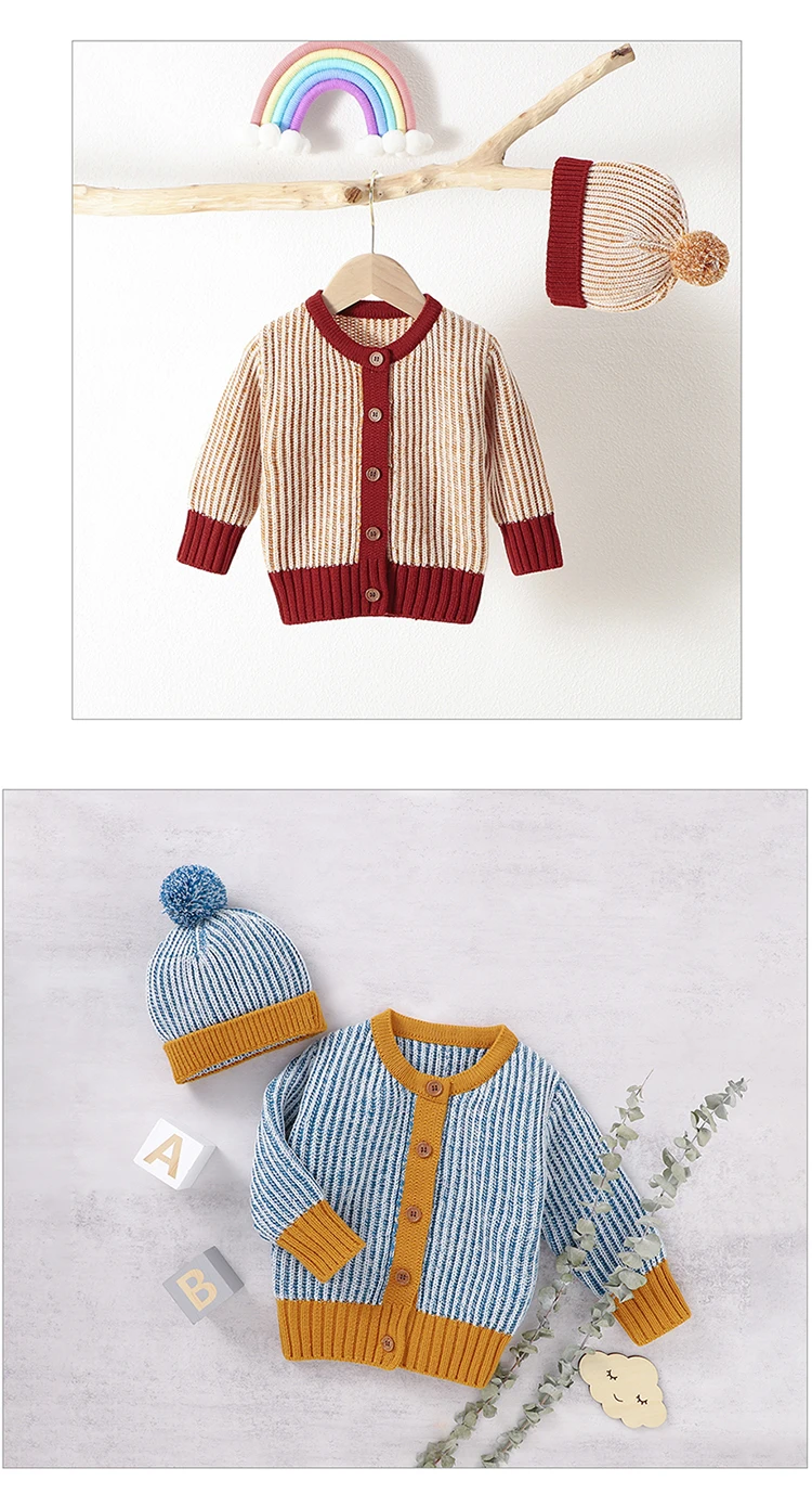 Отзывы о Baby Sweater Knitted Newborn Girl Top + Hat Fashion Stripe Pompom Infant Boy Clothing Cardigan Outerwear Long Sleeve Autumn 2PCS - купить по