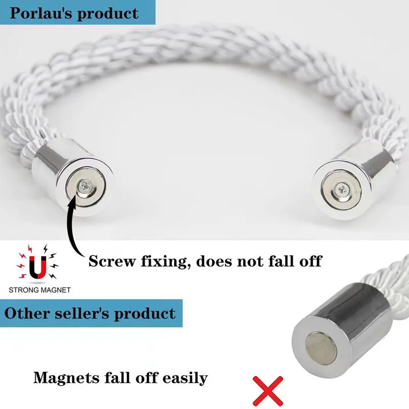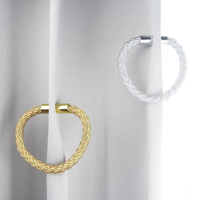 Кольцевая магнитная пряжка для штор, простая и элегантная, гибкая узорная вязка для создания штор, передняя завязка/полузавязывание/простоя, свободная перфорация, Бесплатная установка, отборный высококачественный полиэстер + хлопчатобумажная пряжа, антифрикционный, не легко скатывается. Гладкая поверхность не повреждает шторы, а Тройная хлопковая веревка сплетена с высококачественной текстурой.