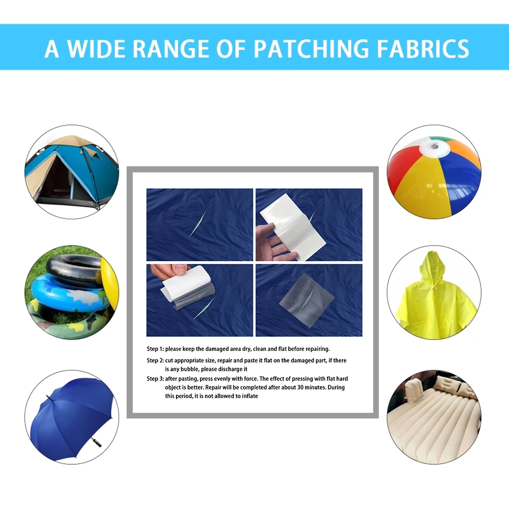 Подходит для ремонта небольших прорезей или протечек на водяных тюках, бассейнах или надувных игрушках, других надувных предметах.