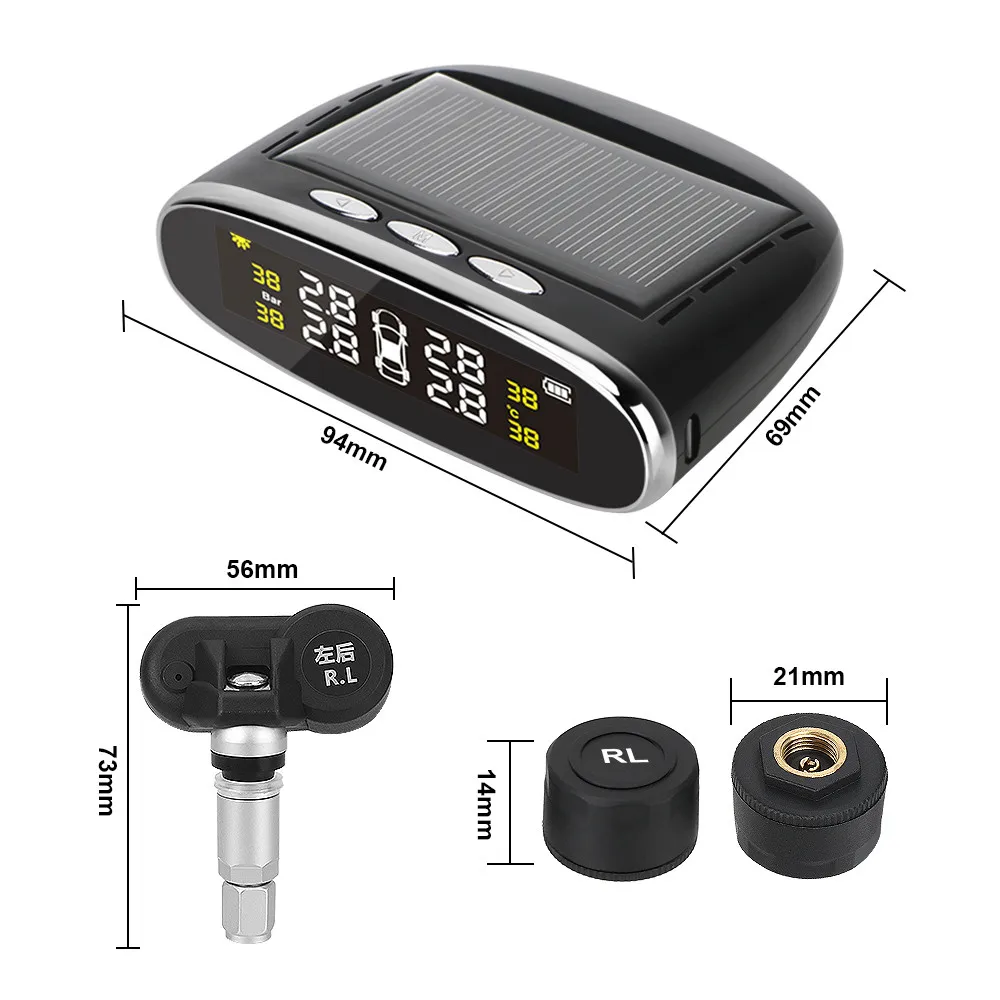 Солнечная система контроля давления в шинах TPMSОсобенности:Монитор давления в шинах в реальном времени может повысить эффективность использования топлива, продлить срок службы шин, повысить безопасность дорожного движения и контролировать температуру.