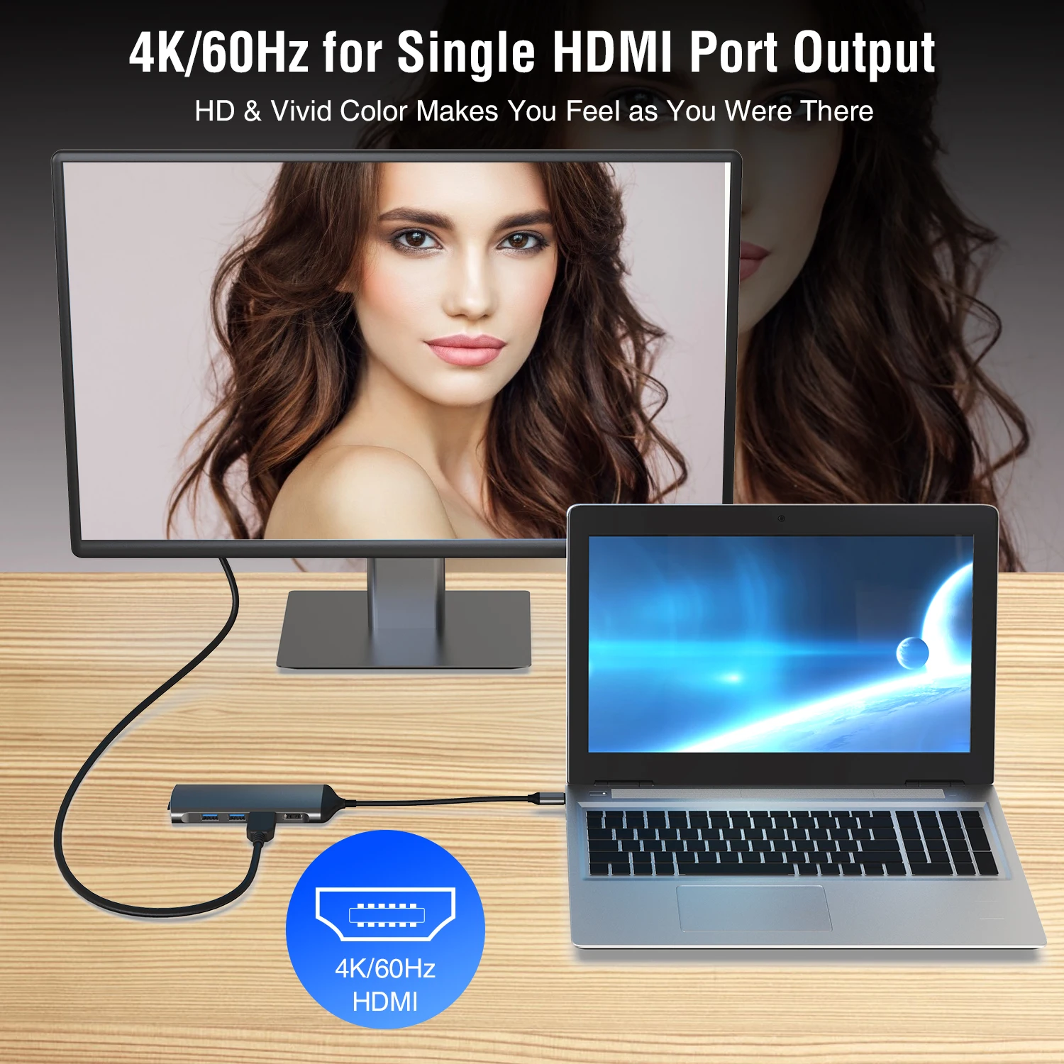Single HDMI 4K/60Hz for Windows & Mac OS laptop