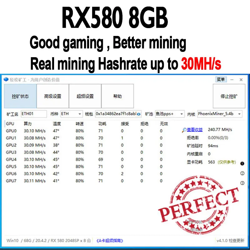 - AMD RadeonRXНабор микросхем 580/570/574/470/474 отправкаПроизвольно, Все поддерживают добычу, хаштемп добычи в диапазоне 25-30 мгн/с.