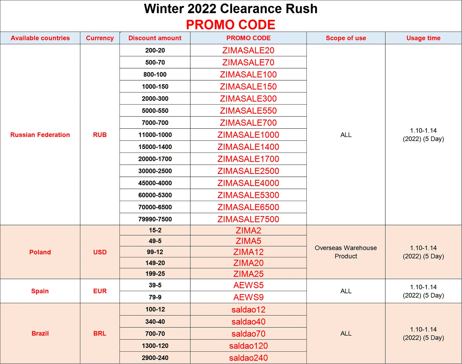 2. Например, для покупателей из Испании введите "ESD1115" в промо-код перед оплатой, если заказ превышает 100 евро, 15 евро будут автоматически вычтены.