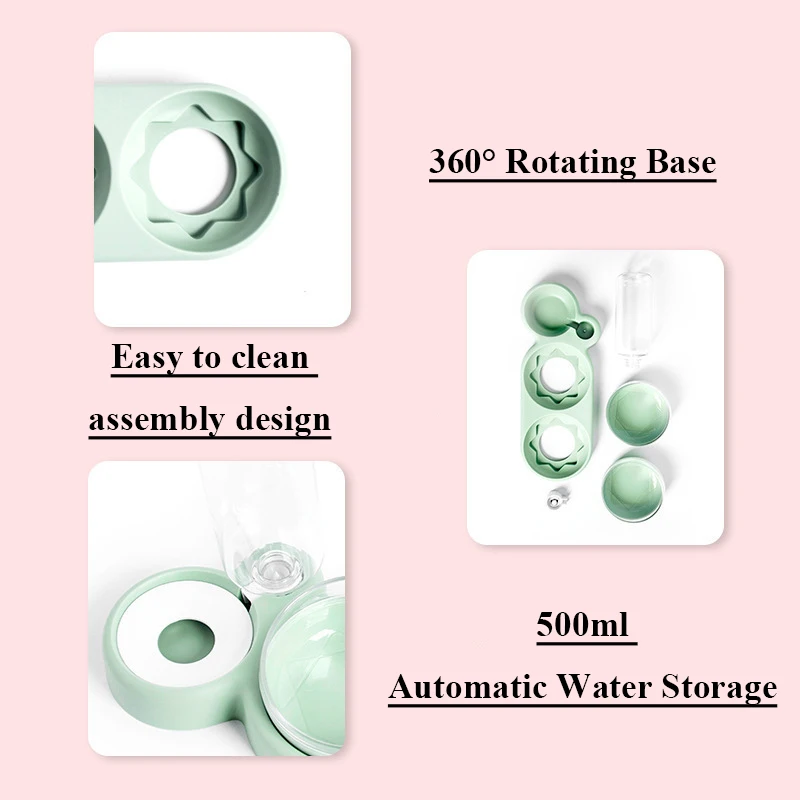 4. Автоматический диспенсер для воды: Сифон принцип кошачьей миски, стабильный контроль уровня воды, автоматическое водоснабжения. 500 мл большой емкости достаточно, чтобы пить 1-2 дня для вашего питомца.