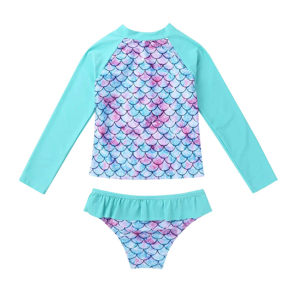 Длинные рукава, вырез лодочкой, купальные топы с рисунком рыбьей чешуи. Двойные Прошитые швы. С UPF 50 + защита от солнца.