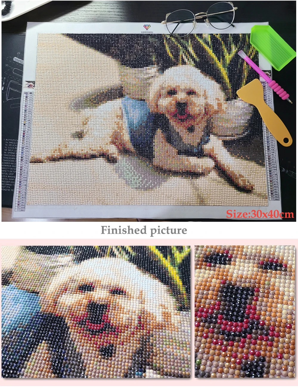 1. Резка, дизайн и изготовление фотографий, размер холста может привести к отклонению размера (колебания на 1-2 см), после получения алмазной картины, пожалуйста, приобретите фоторамку в соответствии с размером алмазной картины.