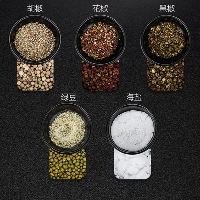 6. Разнообразие помола: перец, черный перец, перец, морская соль, фасоль мунг. Различные Сухие гранулированные приправы, такие как кунжут, могут быть заземлены.
