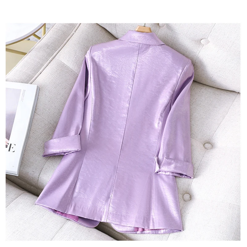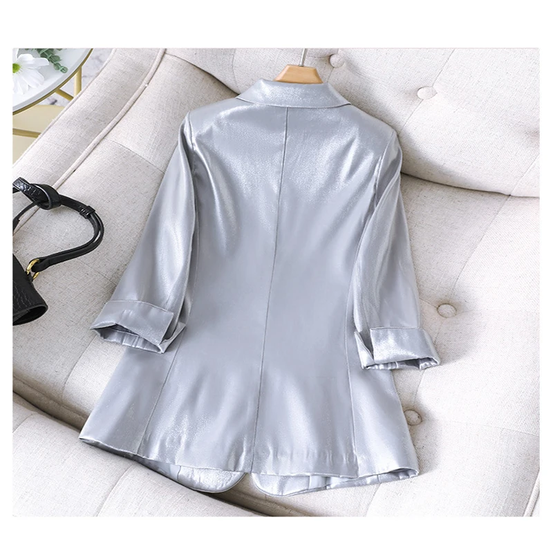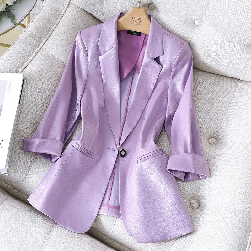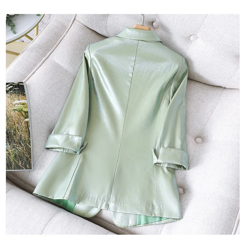 Отзывы о Женский атласный Шелковый Блейзер однотонный на одной пуговице с английским