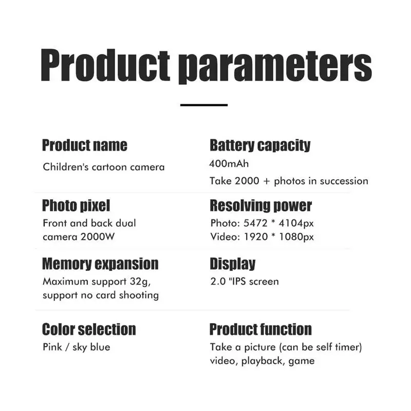 1. Абсолютно новый и высококачественный. Цифровая мини-камера имеет красивый внешний вид и милый дизайн, который очень популярен среди детей.