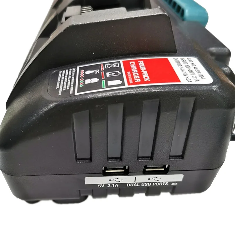 Спецификация:1. Вход: 100 В ~ 240 В, 50 ~ 60 Гц2. Выход: 14,4 V-18V четырехполосный 3.0A всего 12A3. Четырехпортовое многофункциональное зарядное устройство, зарядное устройство 4 батареи4. Защита зарядки: зарядное устройство имеет встроенную функцию защиты цепи для предотвращения перегрева, короткого замыкания, продления времени зарядки и обнаружения поврежденного аккумулятора.5. Два usb-порта,Вы можете зарядить свой мобильный телефон и другое usb-устройство.Индикатор на светильник:Зарядка аккумулятора: Красный светильник имеет 80% емкости, красный и зеленый светильник s-более 80%.Полностью заряженный: устойчивый зеленый светильник.Сбой батареи или короткое замыкание: красный и зеленый огни мигают один раз в секунду.Задержка температуры: красные и желтые огни яркие и стабильные.Нет индикации нагрузки: зеленый светильник мигает один раз в секунду.Посылка включает в себя1 * Быстрая и лучшая 4-портовое зарядное устройство дляМилуоки