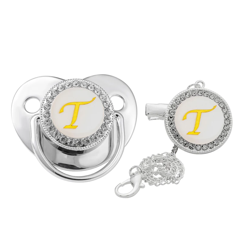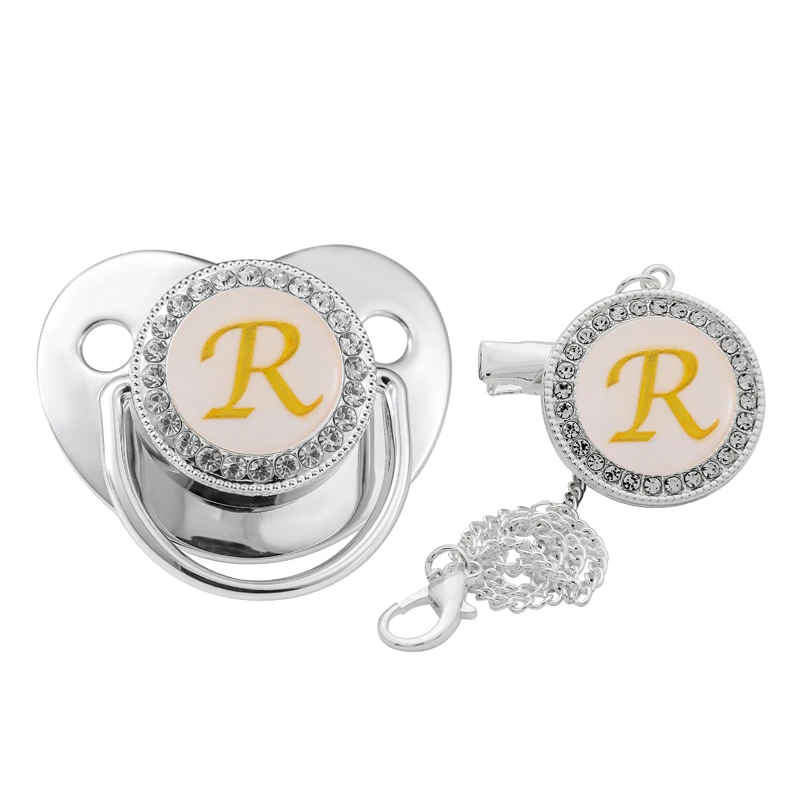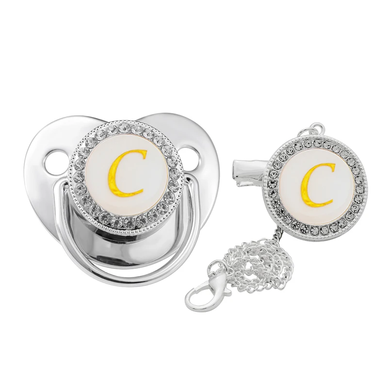 Заводская рекламная 26 Начальная Серебряная блестящая детская пустышка Стразы для новорожденных Chupete пустышка с буквенным зажимом на цепочке