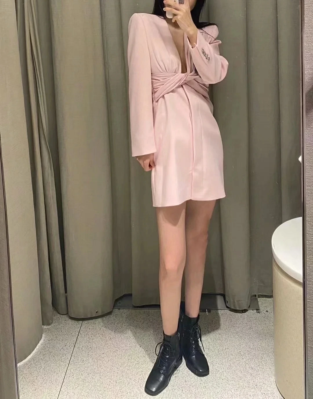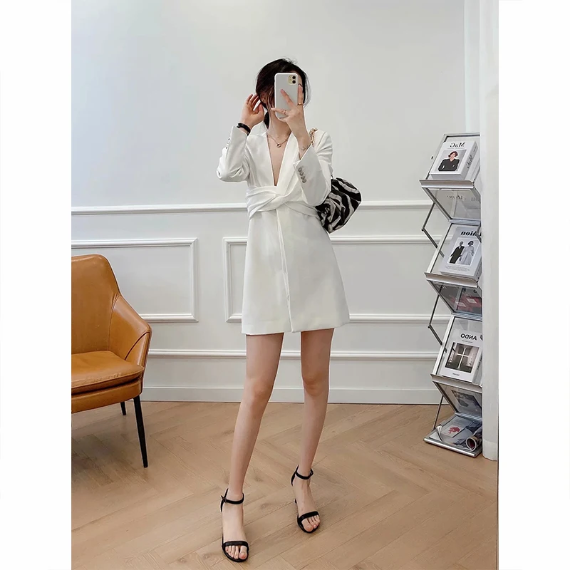 Отзывы о Платье женское 2021 шикарное модное однотонное платье-блейзер с длинным рукавом