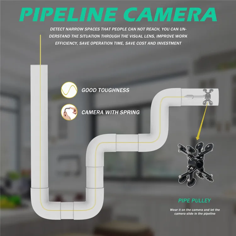 This Pipe Sewer Inspection Camera Using 2.4G Wi-Fi wireless signal technology,FREE software App is downloaded from the App store and works with both Android and IOS systems,can do real time viewing,taking pictures,video recording.Signal Receiving distance,about 100 meters.