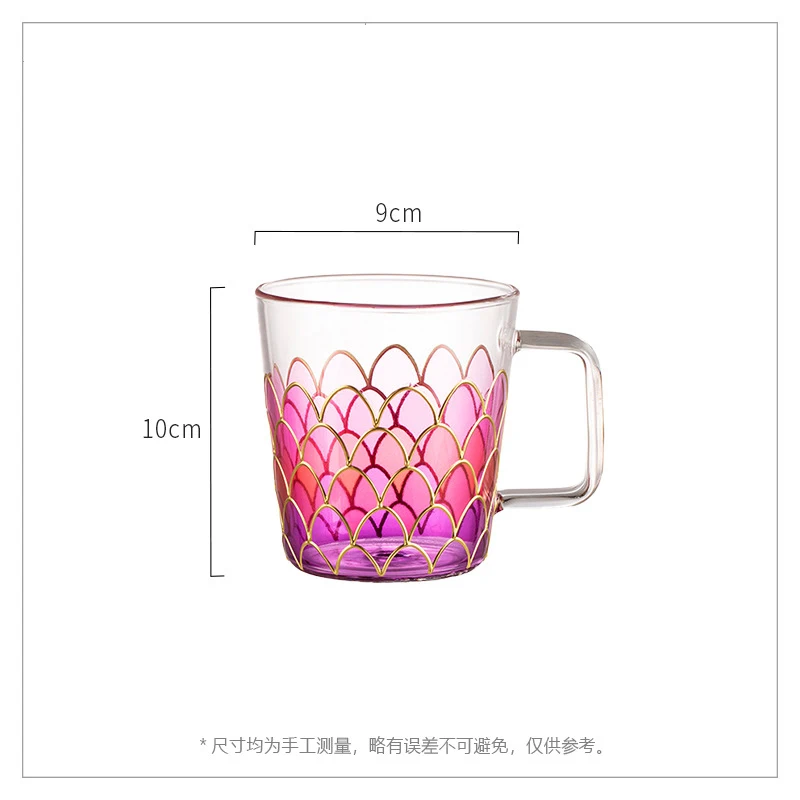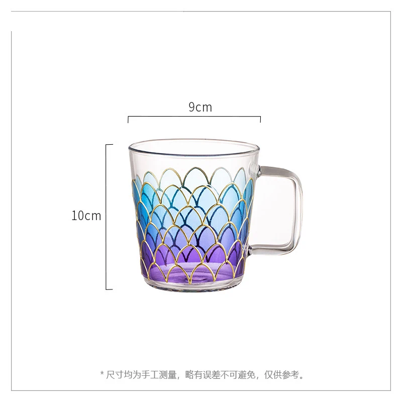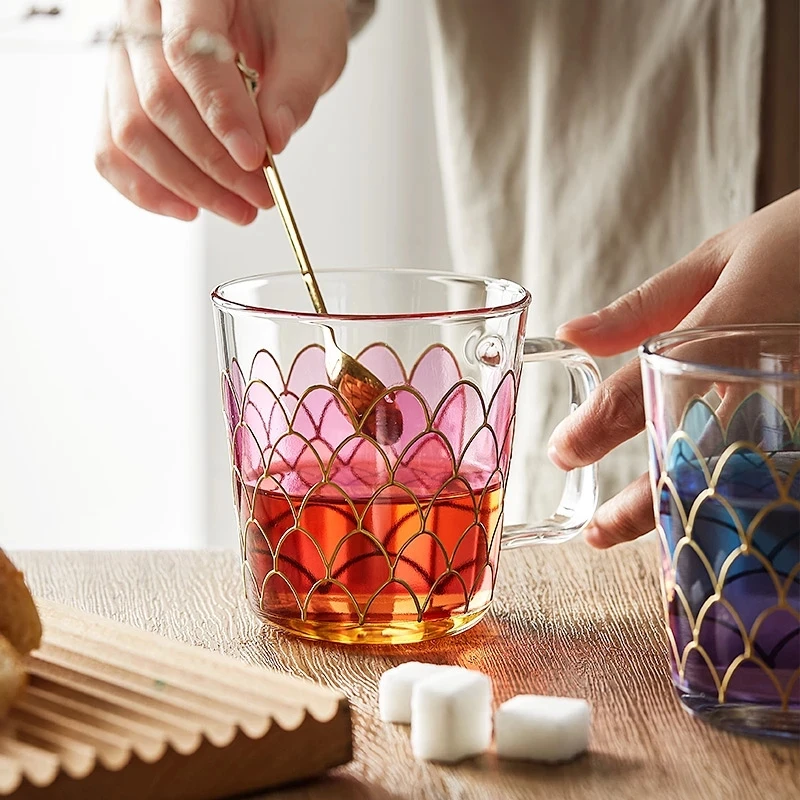 Отзывы о Романтическая кружка в виде рыбьей чешуи с золотой нитью и ручкой термостойкая