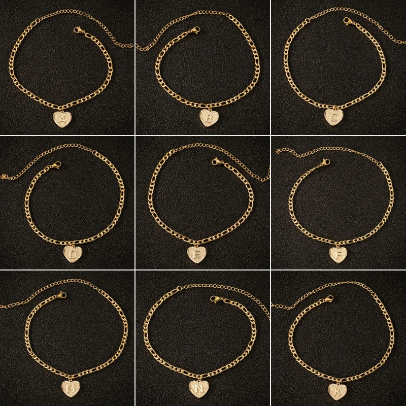 Отзывы о Нержавеющая сталь 26 A-Z Inital браслет шарма сердца алфавит ботильоны золотые