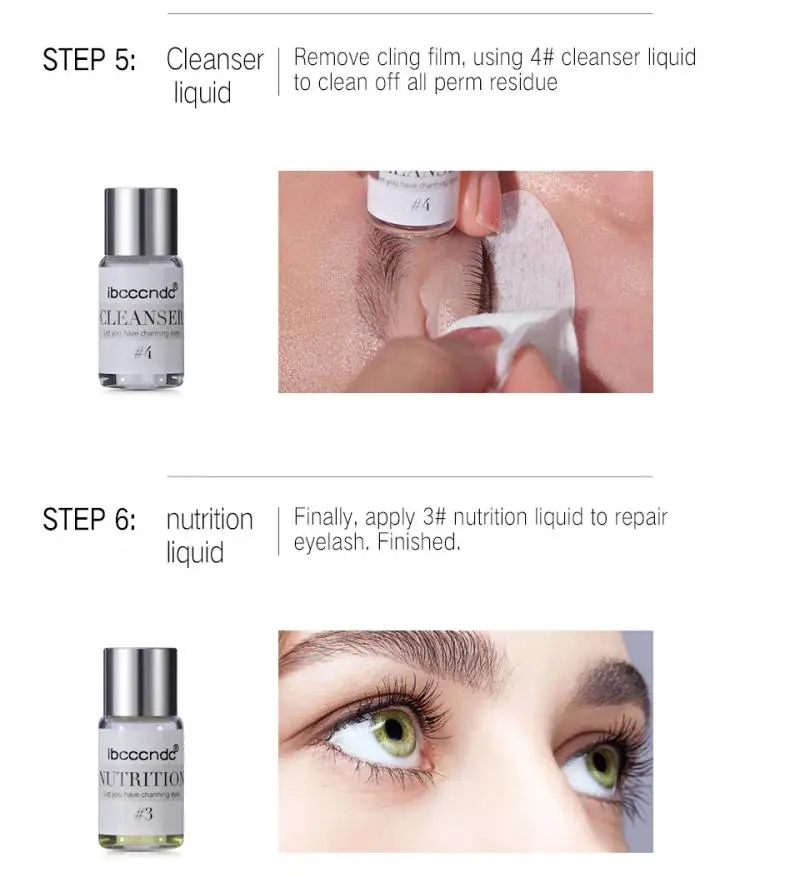 В набор входят химические средства, фиксация, питание, очищающее средство, ложные клей для ресниц, чистящий инструмент и чистящие салфетки.