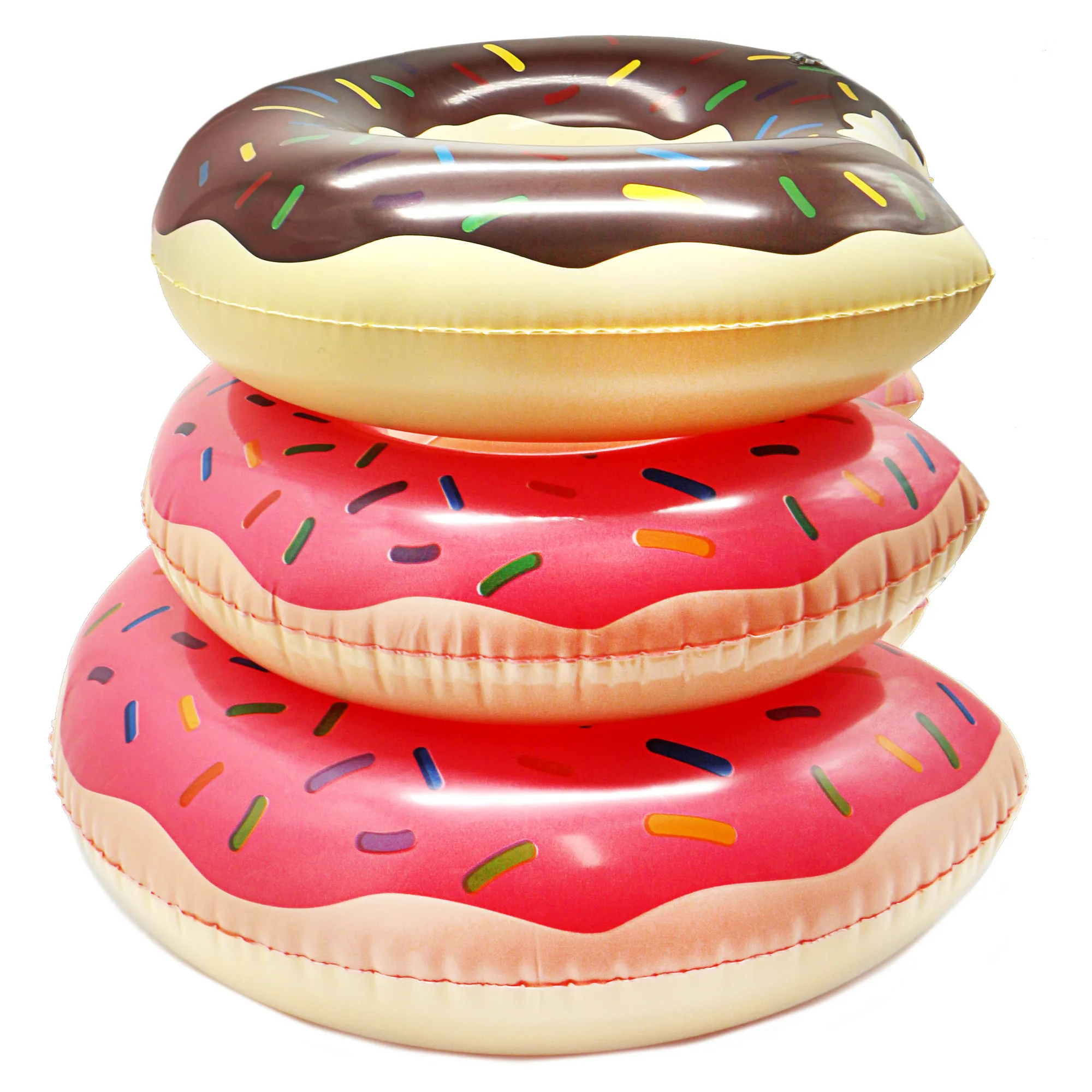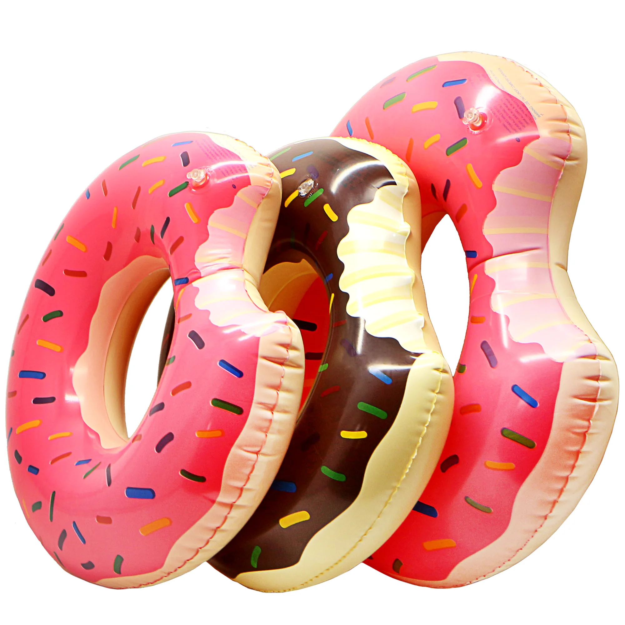 Милая розовая и коричневая форма пончика позволит вам провести расслабляющее и веселое лето в бассейне или на пляже.