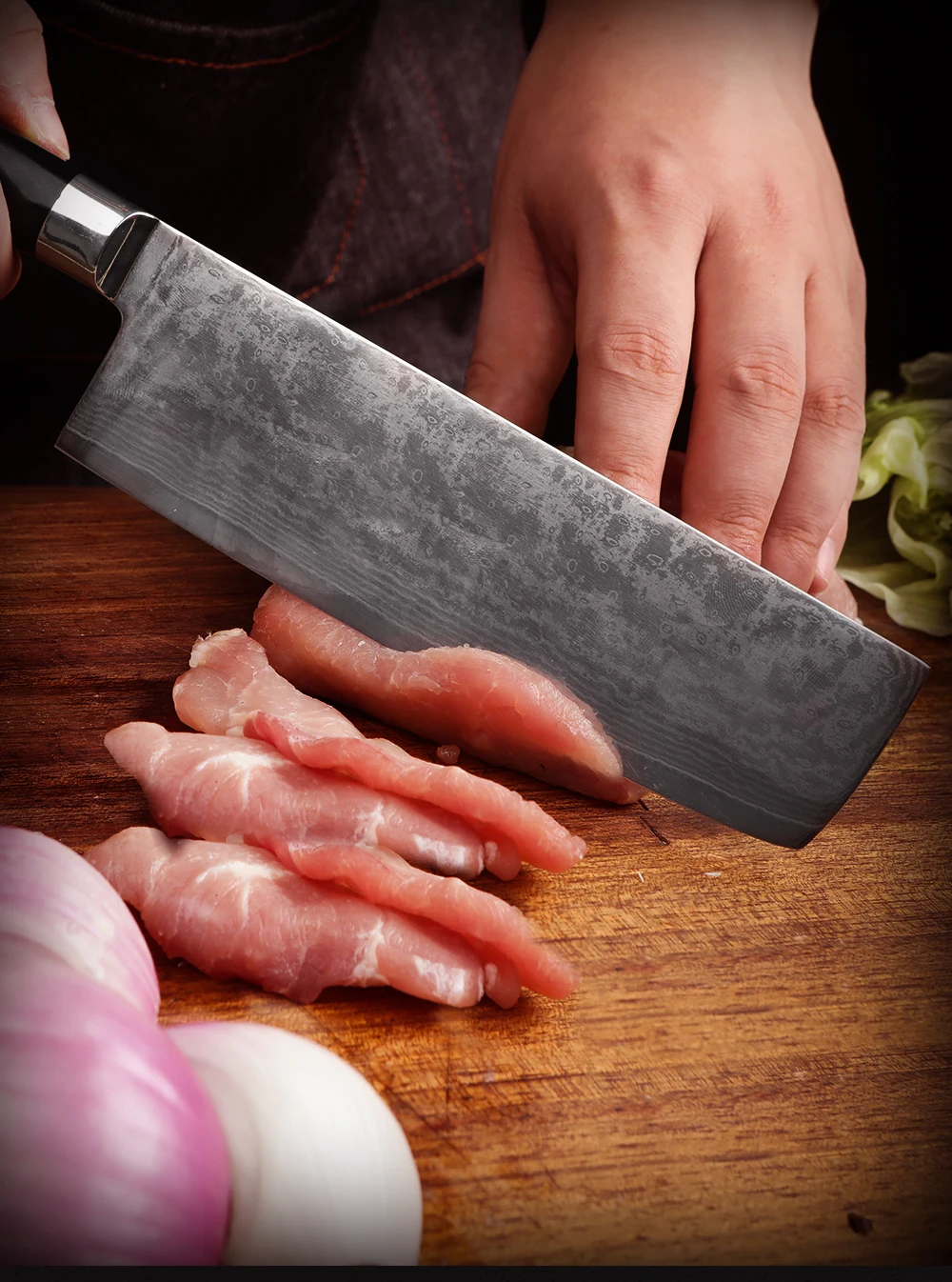 1. Высококачественный VG10 дамасский стальной материал обеспечивает твердое качество и долговечность.