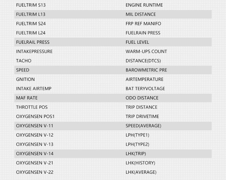 Режим работы OBD2 не совместим со следующими транспортными средствами: