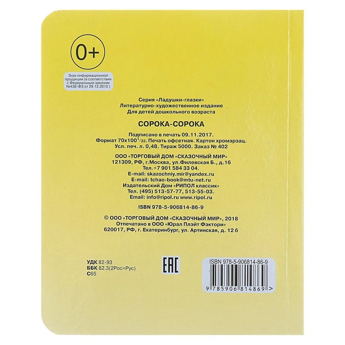 Отзывы о Книжка с глазками Сорока-сорока 130 x 160 мм | Игрушки и хобби