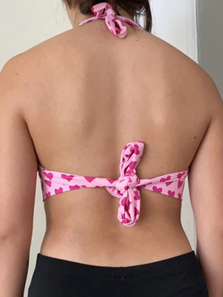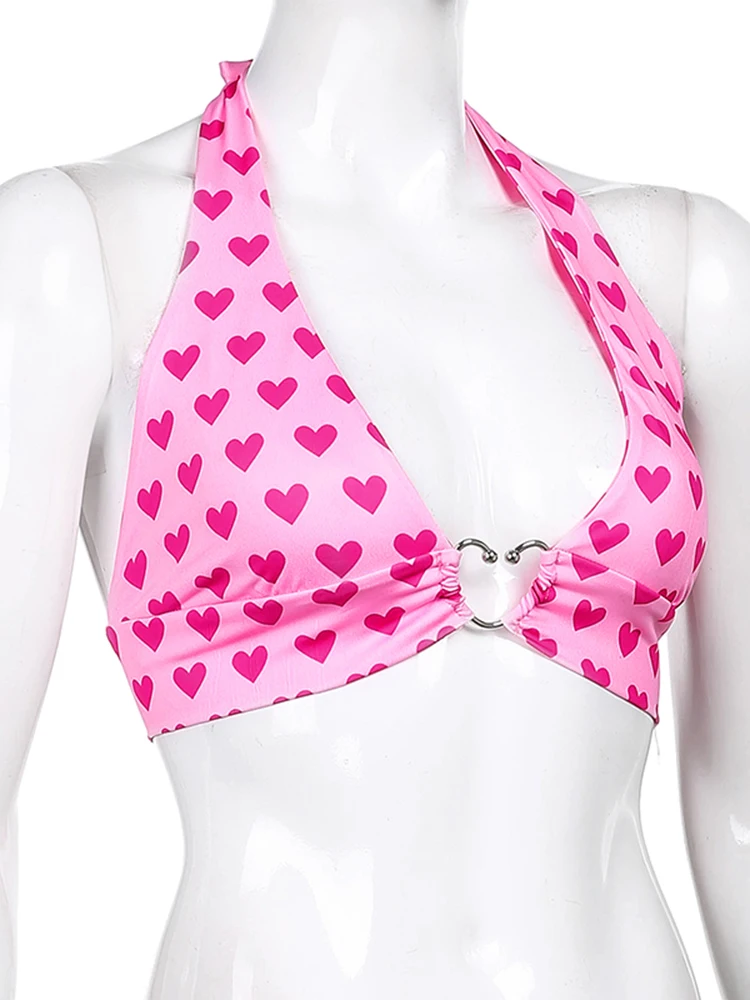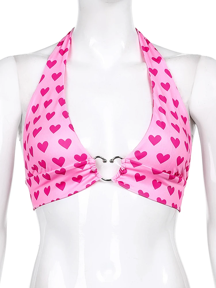 Отзывы о Женский укороченный топ без рукавов розовое бюстье с принтом в виде сердца