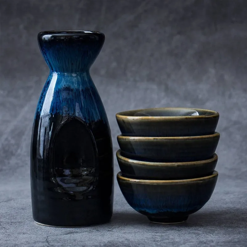 Стандартные размеры: токарная синяя чаша для печи, кувшин для вина, набор для вина (четыре чашки на кувшин)
