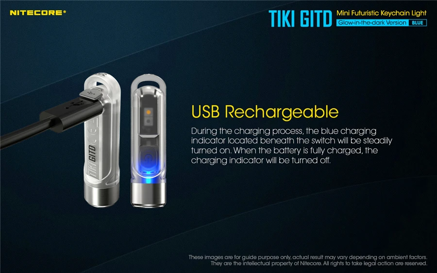 Отзывы о NITECORE TIKI GITD синий USB Перезаряжаемый футуристический брелок фонасветильник макс. 300