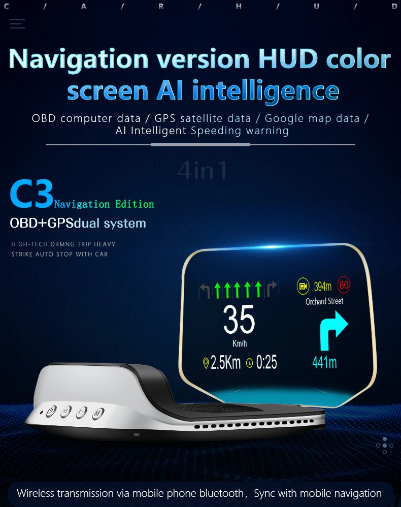 2021 Новый Hud C3 налобный дисплей Gps измеритель скорости лобового стекла автомобиля проектор Kmh/kpm совместим со всеми автомобилями