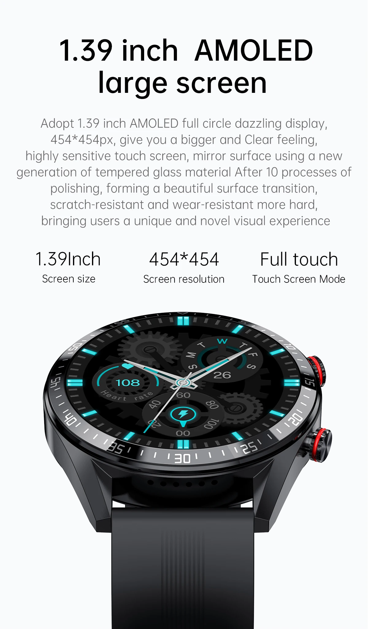 Дисплей: 1,39 дюйма AMOLED