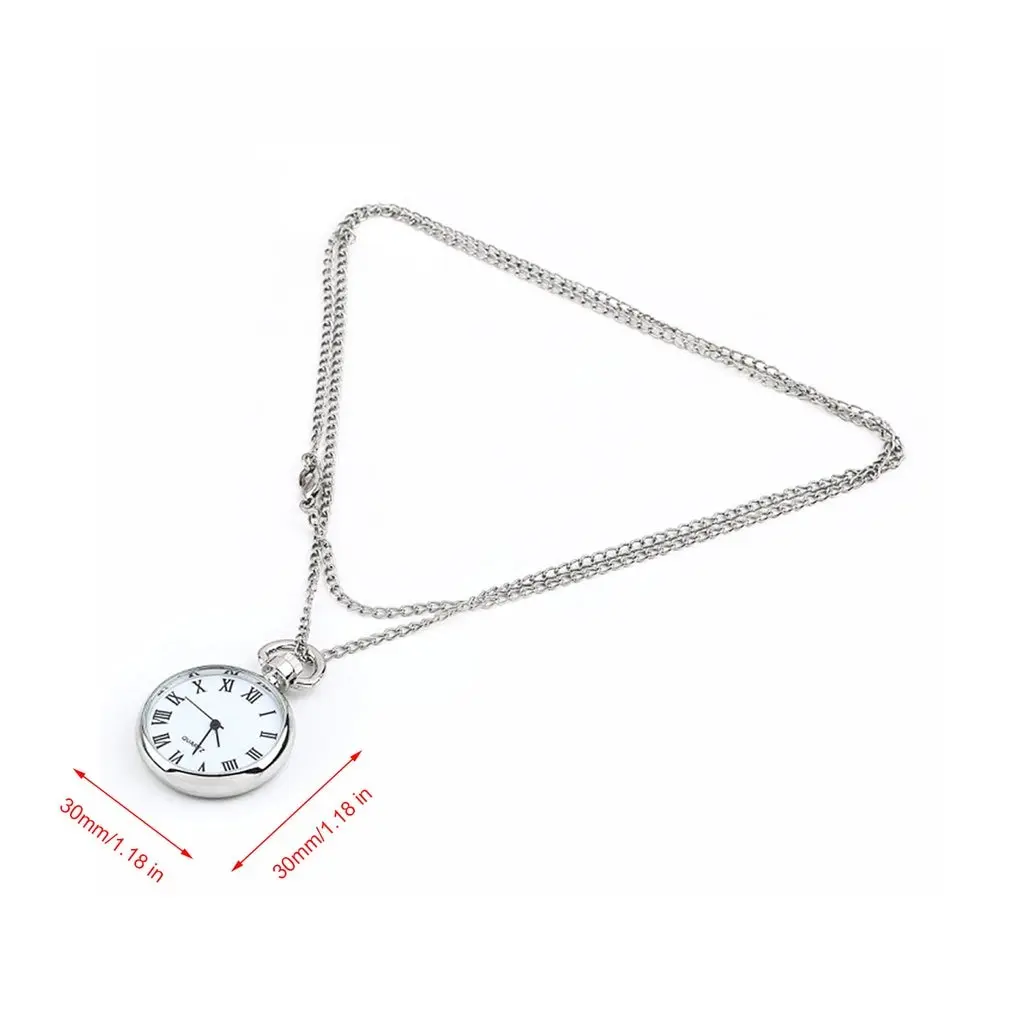 Античный белый циферблат кварцевые круглые карманные часы ожерелье Серебряная цепочка кулон.