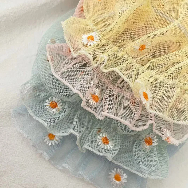 Кружевная Одежда для собак с принтом в виде ромашек с фатиновой юбкой без рукавов жилет Собака Толстовка Толстовки прозрачная рубашка для маленькой собаки Йорки щенок наряд л