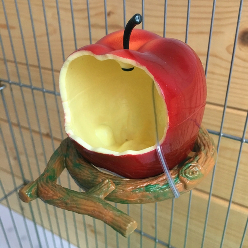 Имитация фруктового стиля кормушка для птиц, изготовленная из пластикового материала. Задняя часть может удерживаться на птичьей клетке