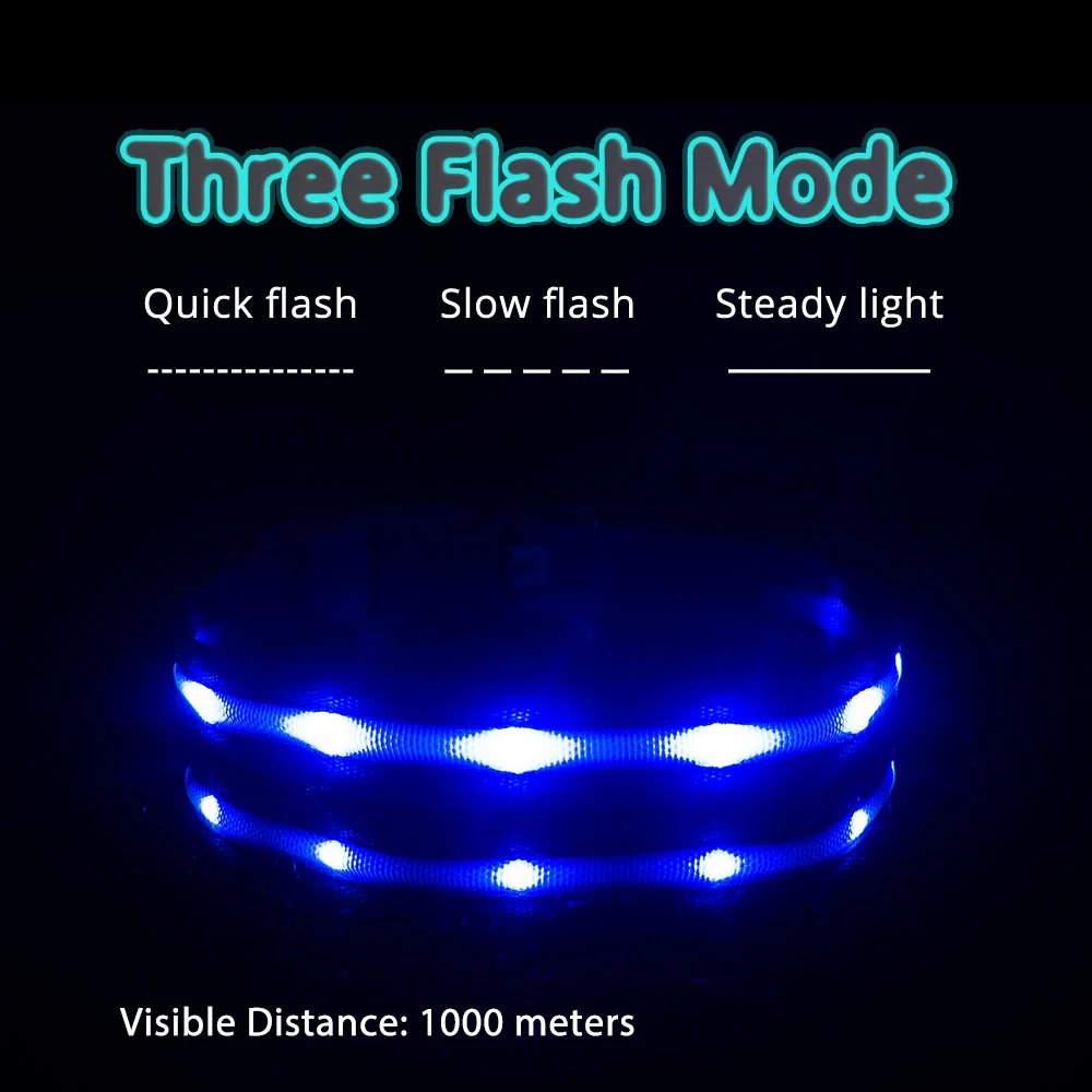 И есть три режима вспышки этого ошейника, устойчивый светильник, быстрая вспышка и медленная вспышка.