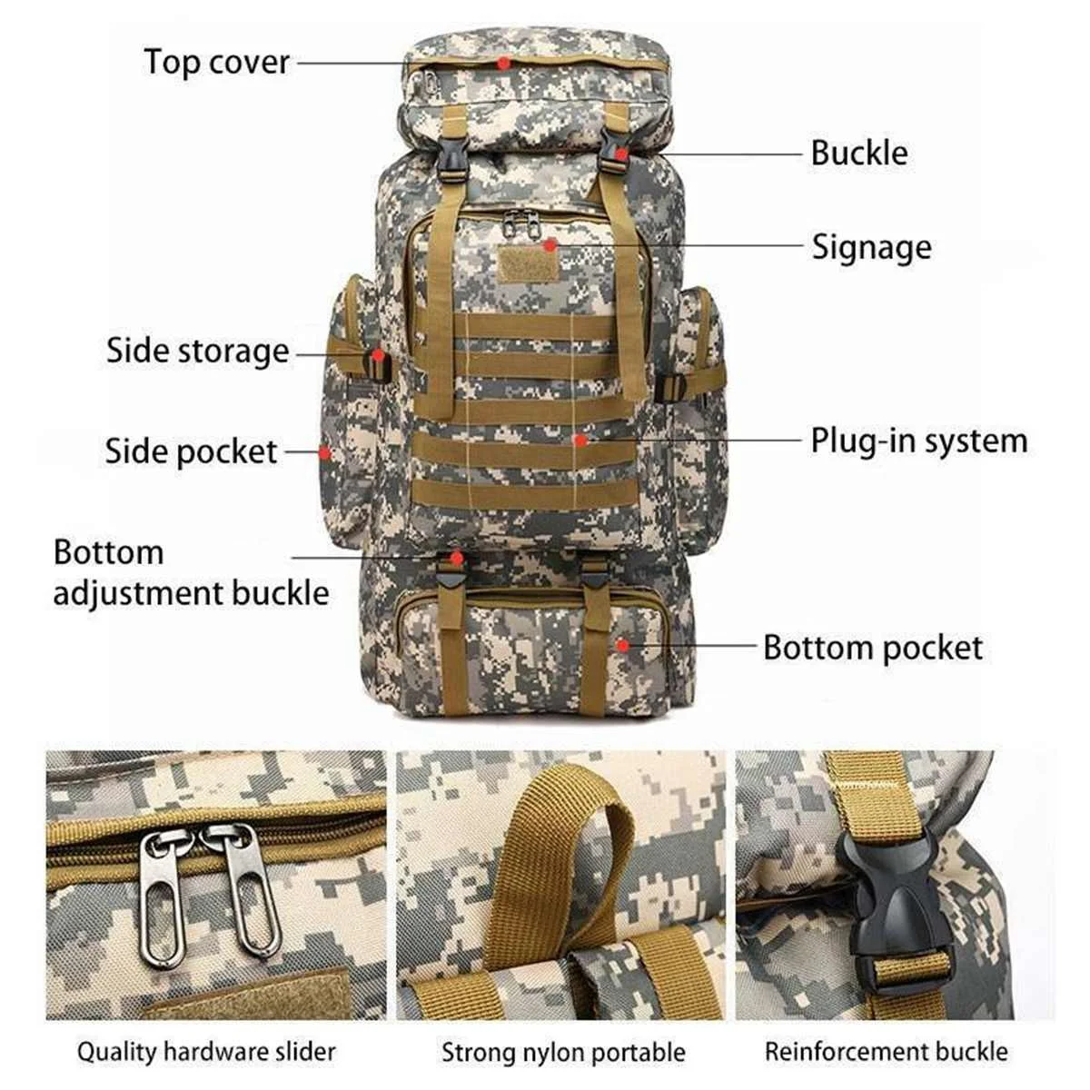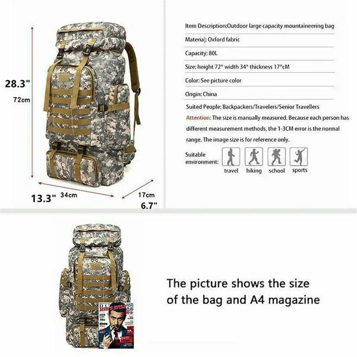 Отзывы о 80 л уличные военные рюкзаки ткань Оксфорд водонепроницаемый тактический рюкзак