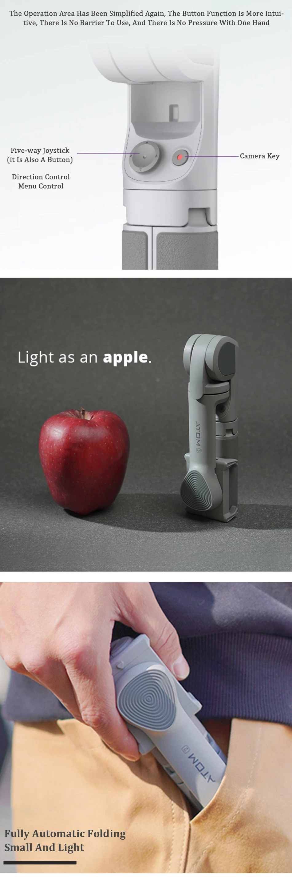 2. Новый трехосный электронный стабилизационный дизайн является более стабильным.