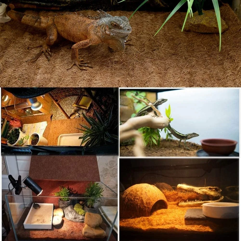 Этот коврик для кокосовой пальмы может использоваться для озеленения резервуара под рептилию, что делает питомца комфортным и красивым местом обитания, очень практичным и полезным.
