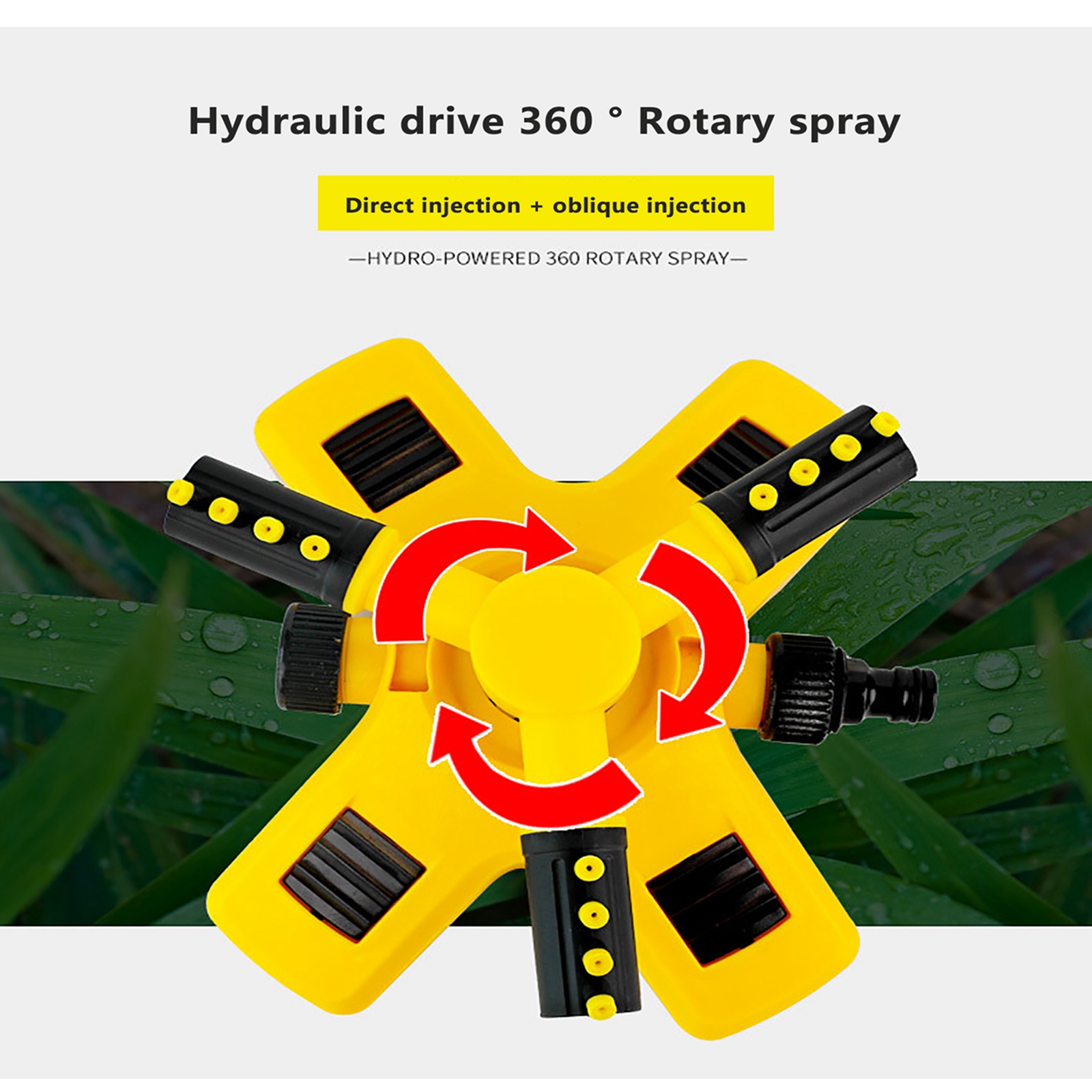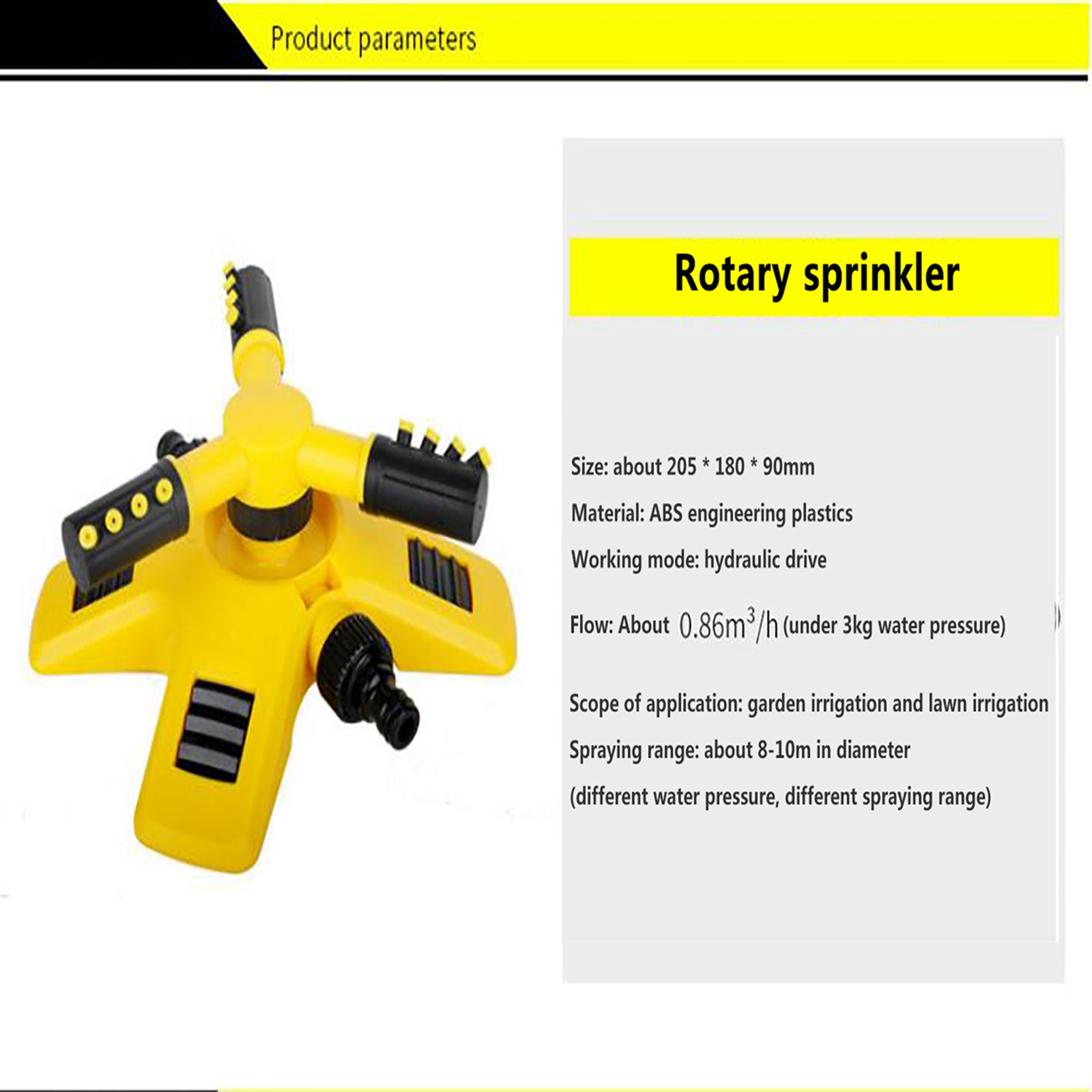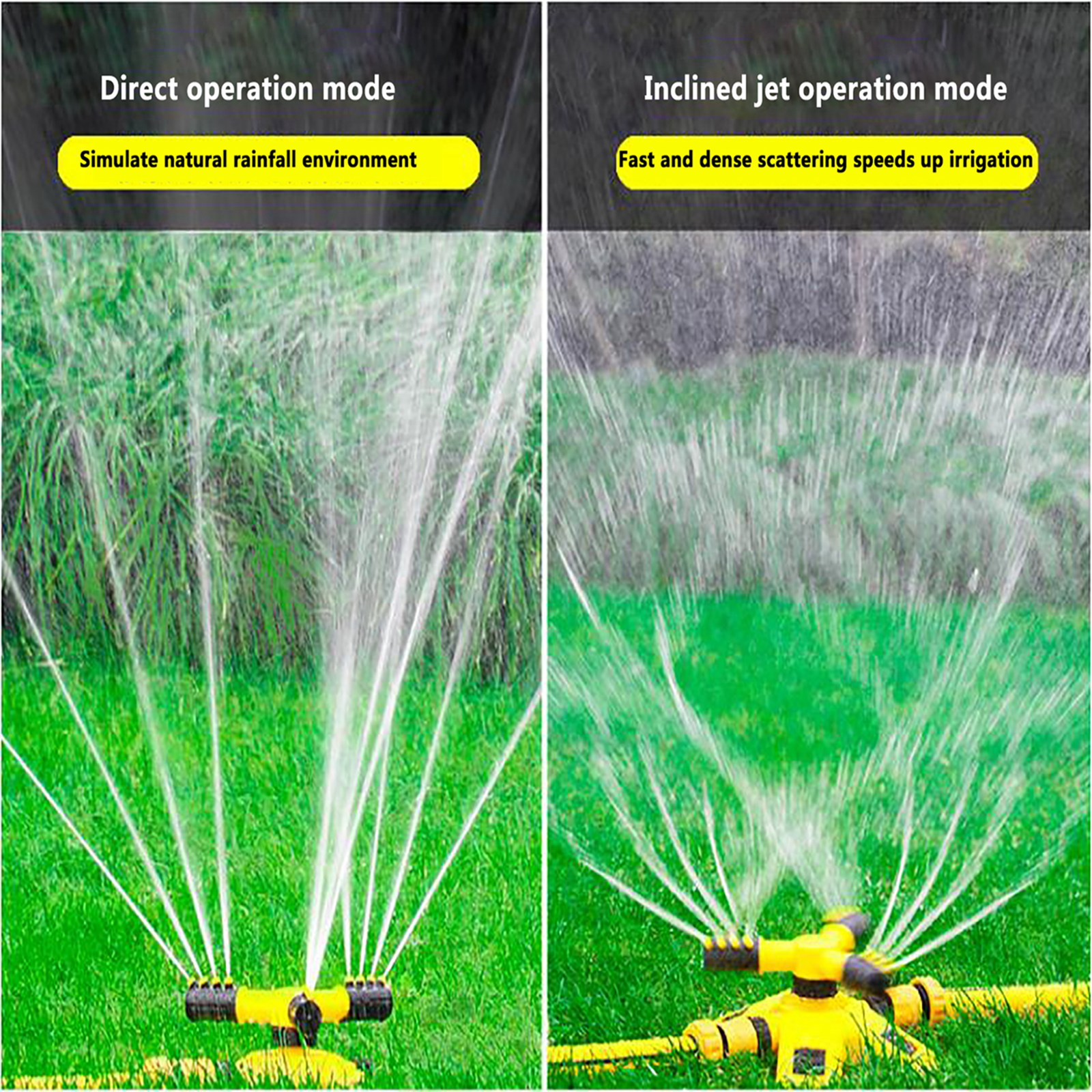 Вода, выбрасываемая из спринклера, плавится равномерно и в дождь. Подходит для орошения сада, ухода за лужайкой, цветами и растениями, посадки в сельском хозяйстве и садоводстве. В жаркие летние дни Наслаждайтесь детьми или домашними животными.Характеристики: