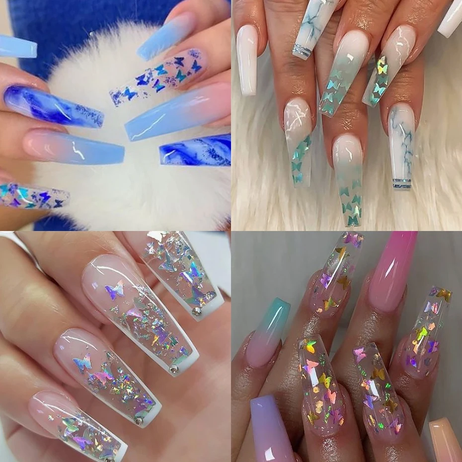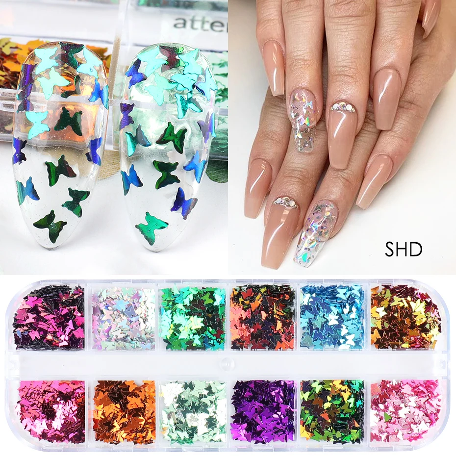 Отзывы о 12 Сетки бабочка ногтей блестящая голографическая смешанные цвета слайдер хлопья