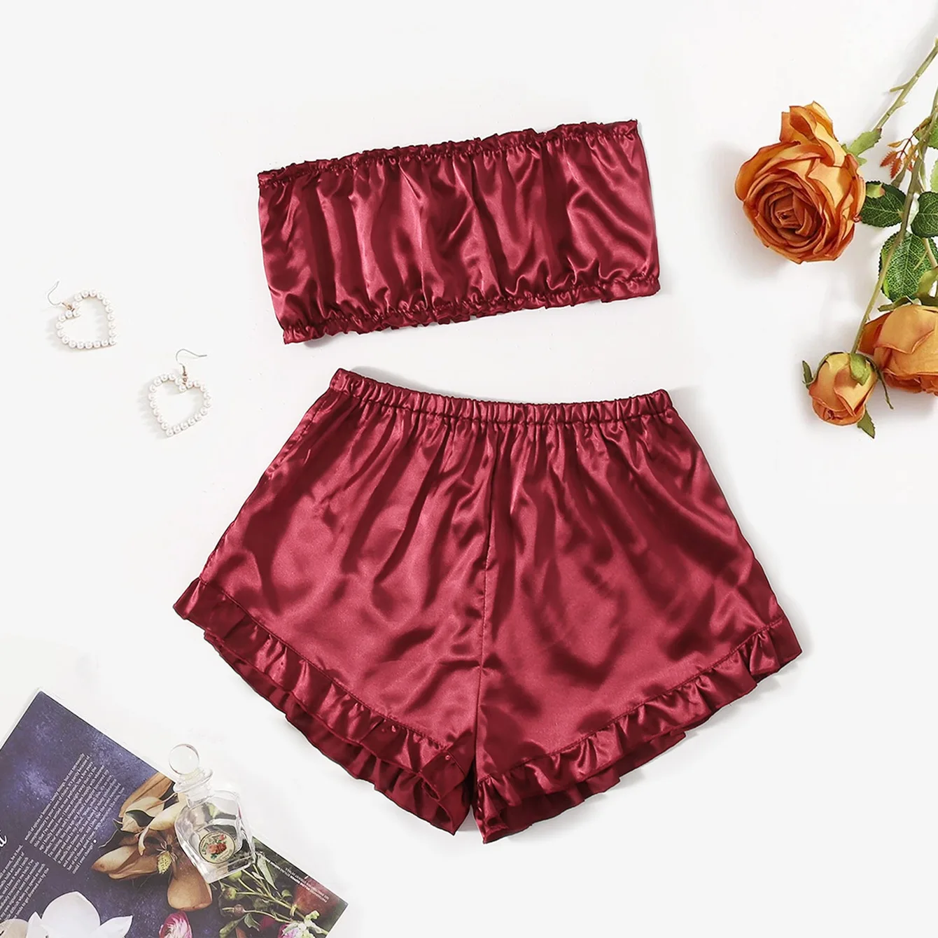 Отзывы о Пижамный комплект женский из 2 предметов атласный Шелковый пижамный с